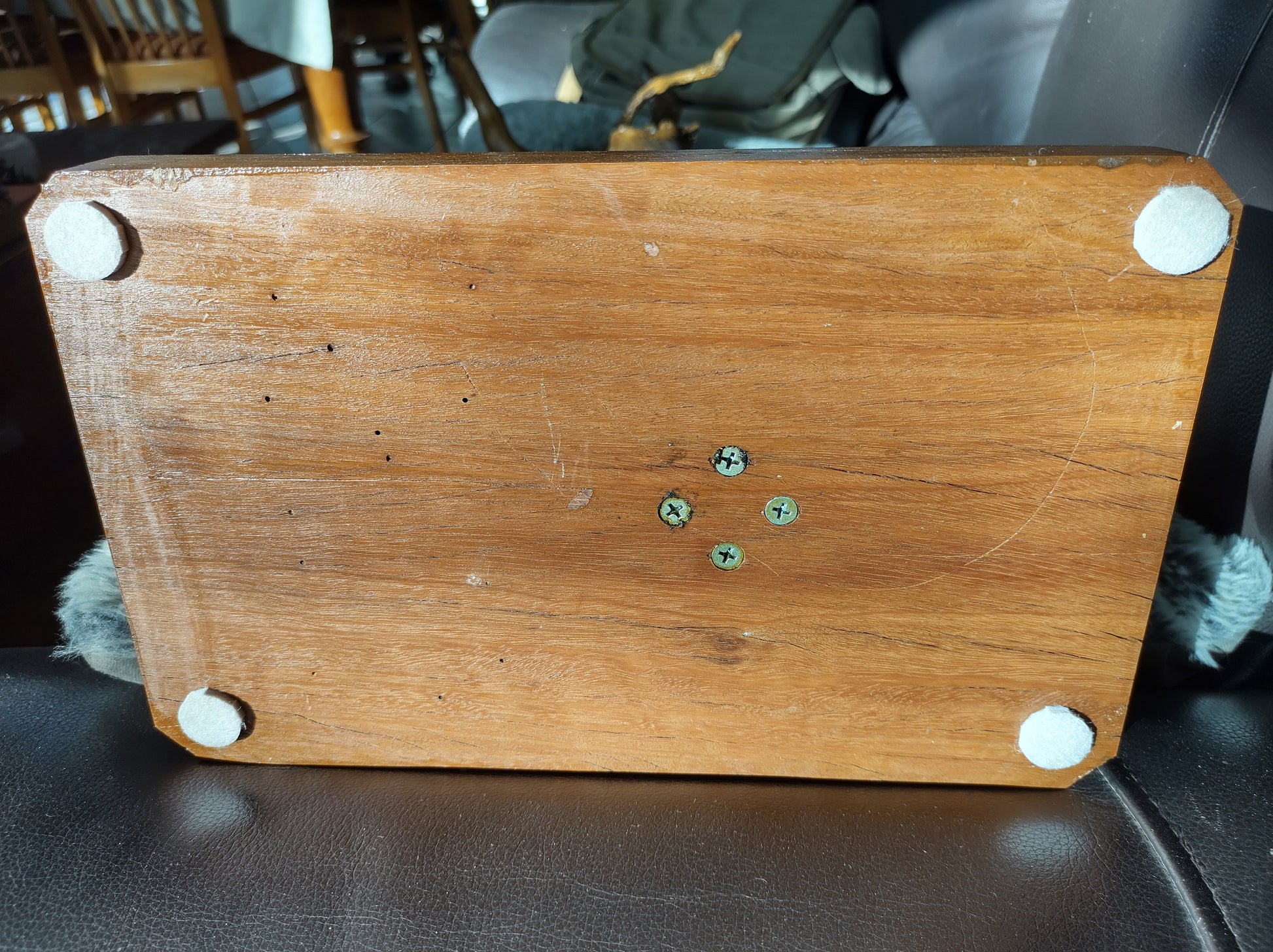 My contribution to the artwork was a little bit of elbow grease (Actually quite a lot) to clean it up, make the mounting board and fit the root to the mounting board. Finished off with a coat of decking oil. Furry feet are added to the underside to protect your floor coverings.
